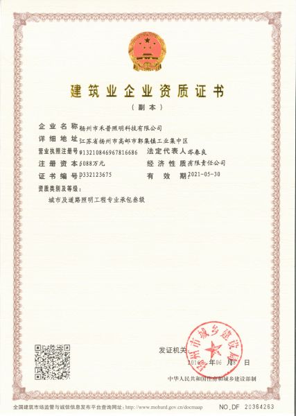 | 城市及道路照明工程專業(yè)承包叁級資質(zhì) |