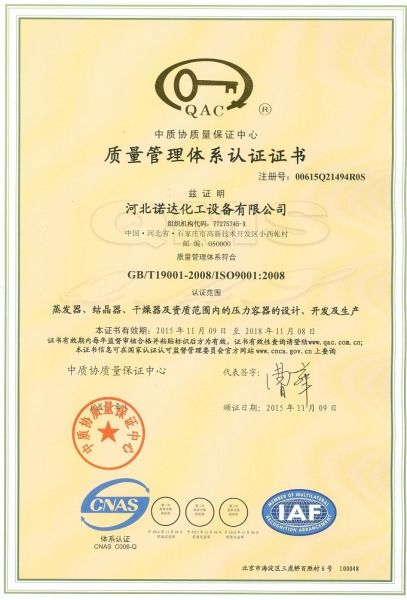 河北諾達(dá)化工設(shè)備有限公司是一家致力于為客戶提供完善的高鹽廢水零排放一體化解決方案,為客戶提供優(yōu)秀的MVR蒸發(fā)、工業(yè)連續(xù)結(jié)晶、干燥等單元操作設(shè)備和EPC服務(wù)的新型現(xiàn)代化高新技術(shù)公司。
