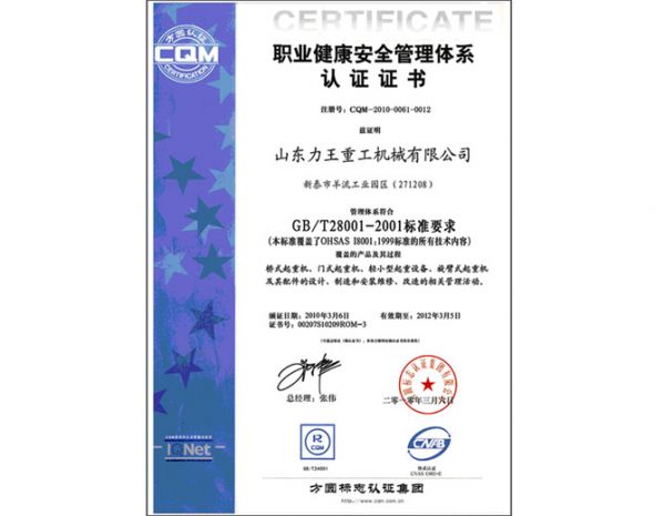 產(chǎn)品名稱: 職業(yè)健康安全管理認(rèn)證證書 |