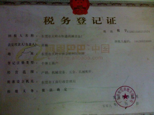 產(chǎn)品名稱: 稅務(wù)登記證 |
