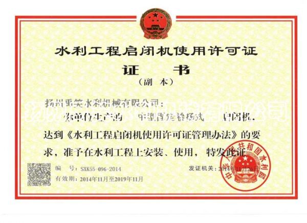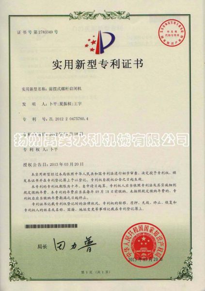 近年來(lái),公司憑借精干的技術(shù)力量自行研制出了螺旋線控啟閉機(jī)、前擺式螺桿啟閉機(jī),并獲得了中華人民共和國(guó)國(guó)家知識(shí)產(chǎn)權(quán)局頒發(fā)的專(zhuān)利證書(shū),豐富了用于鋼壩閘門(mén)一啟閉機(jī)的種類(lèi),并得到了廣泛的推廣利用,在行業(yè)中取得了一致認(rèn)可。