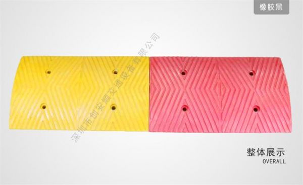 4.黑黃相間,特別醒目;每塊端節(jié)上可安裝高亮度的反光珠,晚上反射光線,使司機可以看清減速坡的位置;