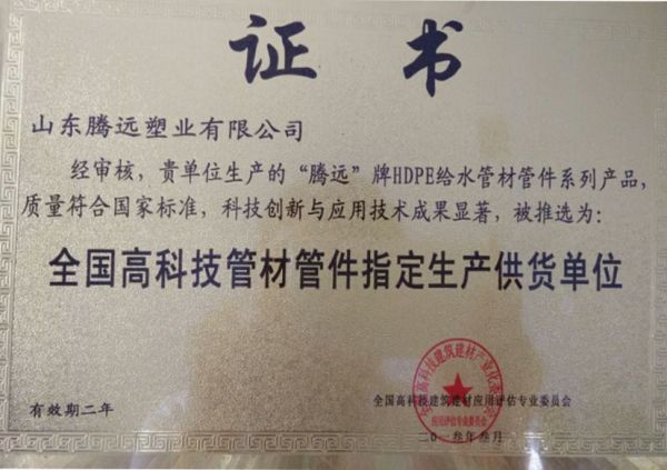 全國(guó)高科技管材管件指定生產(chǎn)供貨單位