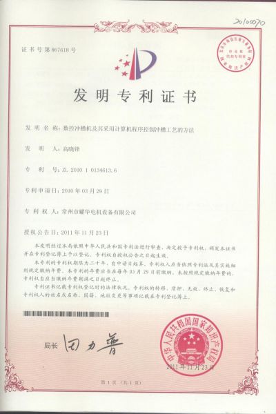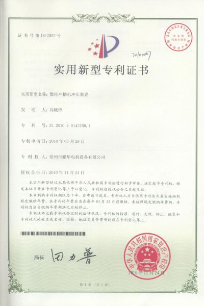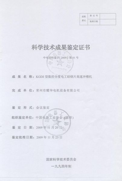 公司通過了ISO9001:2008質(zhì)量管理體系認(rèn)證,多項產(chǎn)品被定為“國家級新產(chǎn)品”,獲得多項發(fā)明專利及實用新型專利,其中數(shù)控高速沖槽機(jī)被認(rèn)定為“江蘇省高新技術(shù)產(chǎn)品”并獲得國家科技部創(chuàng)新基金支持,2009年11月由中國電器工業(yè)協(xié)會、江蘇省經(jīng)貿(mào)委、常州市科技局組織科技成果鑒定和新產(chǎn)品新技術(shù)驗收鑒定,與會專家一致認(rèn)定該整機(jī)技術(shù)達(dá)到了國內(nèi)領(lǐng)先、國際先進(jìn)的水平。產(chǎn)品遍及全國各地,并出?...... [