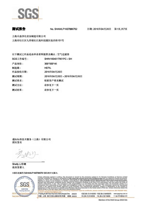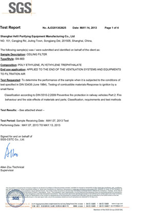 上海禾益凈化設(shè)備制造有限公司過濾棉阻燃SGS報(bào)告