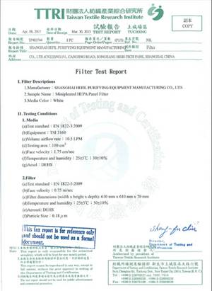 上海禾益凈化設(shè)備制造有限公司TTRI證書