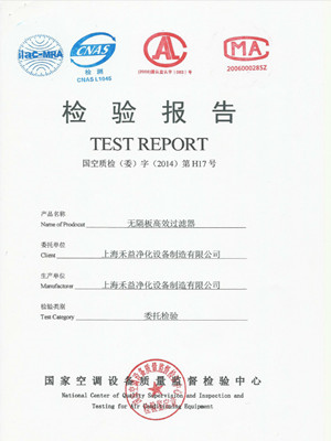 無隔板高效過濾器檢驗(yàn)報(bào)告