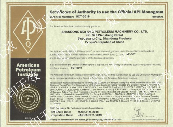 API認(rèn)證證書APISpec5CT(油管套管)